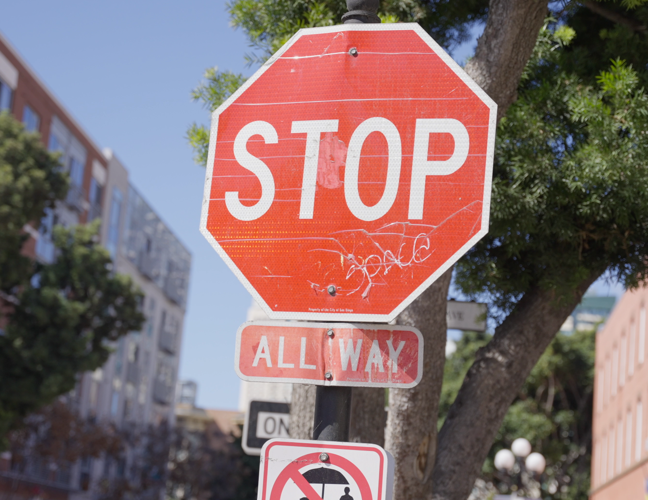 An experimental film that focuses on the road signs of downtown San Diego, from familiar stop signs to other street markers